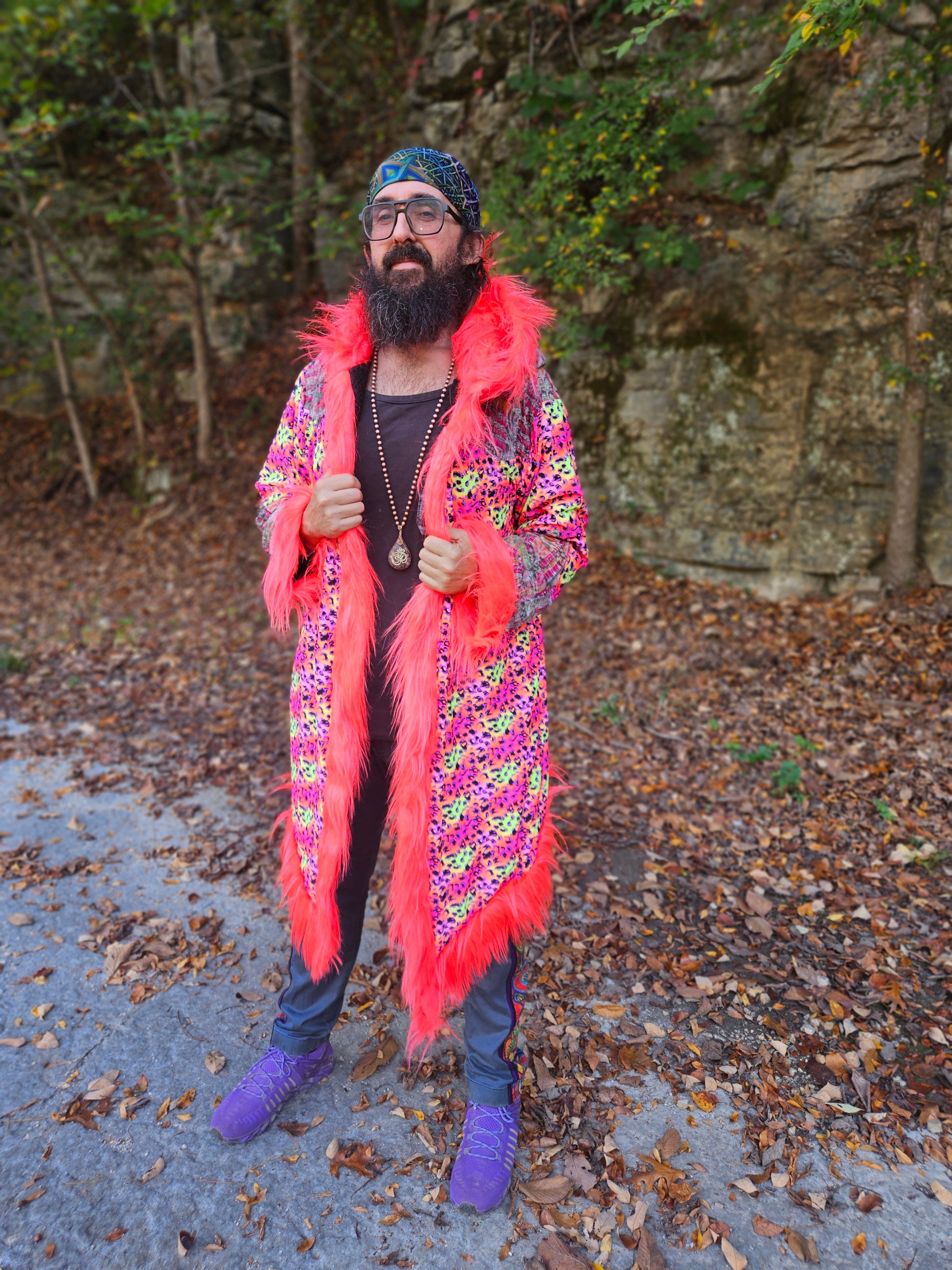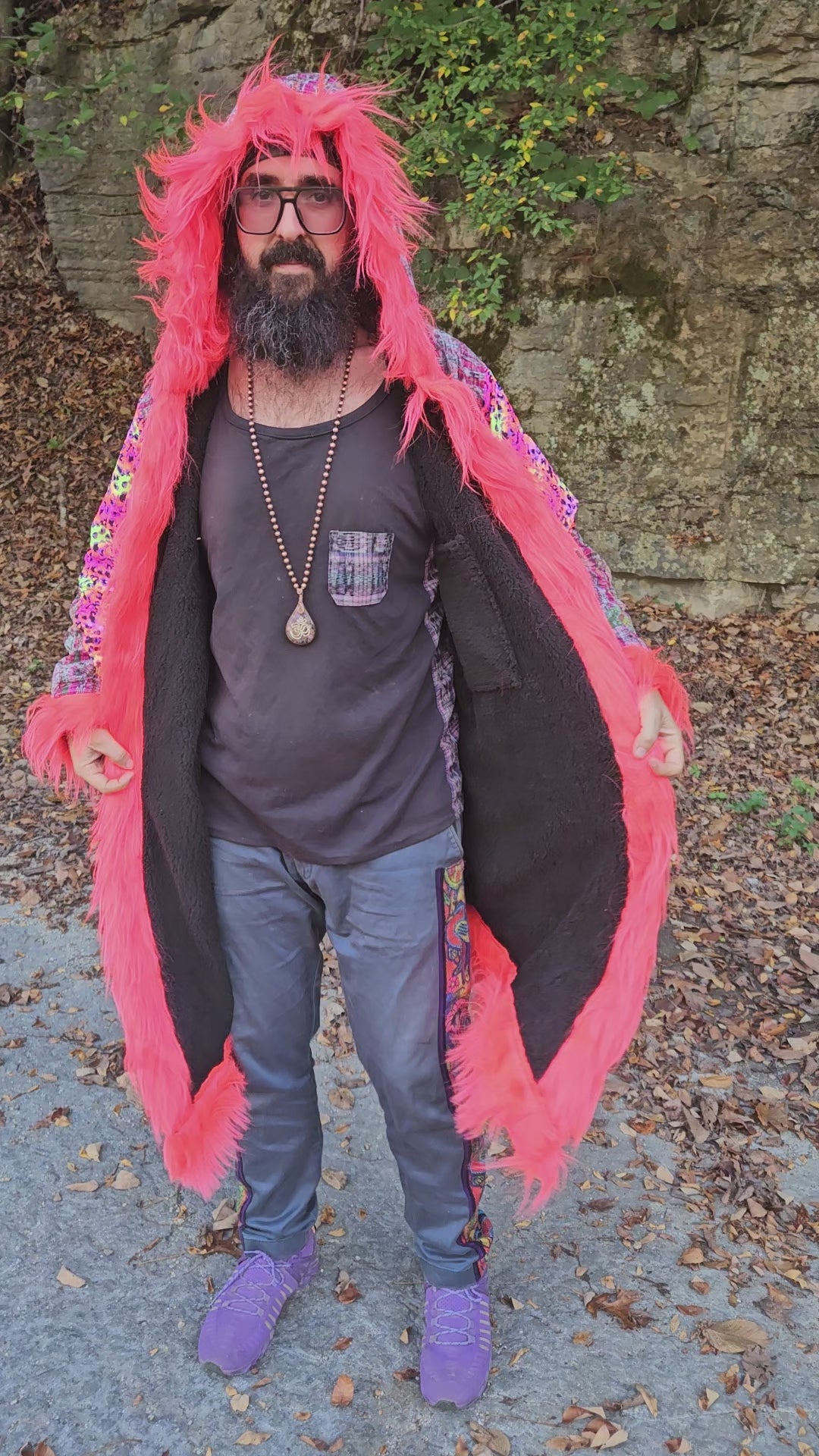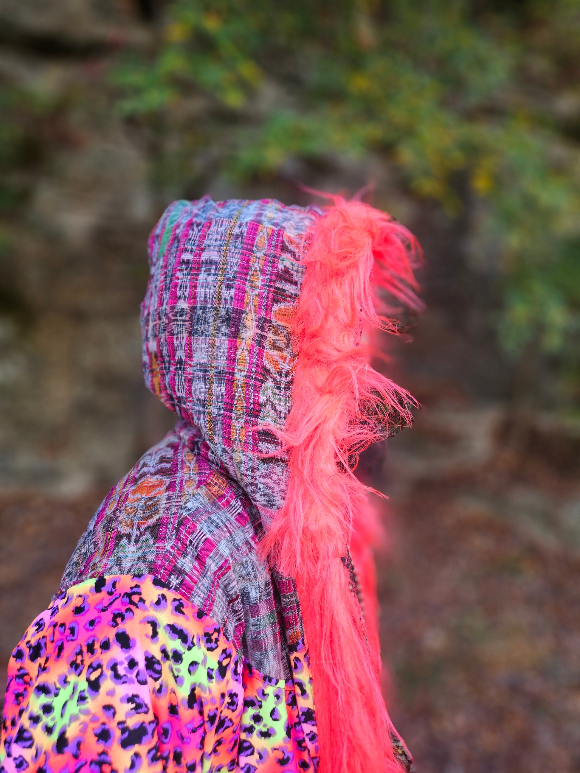 Each Moksha Moda cloak is a one-of-a-kind wearable work of art. With its unique blend of ethical craftsmanship, upcycled materials, and funky style, this wild cloak is sure to Funk Up Your Vibe, Liberate your Fashion, and it is ready for an adventure of a lifetime.