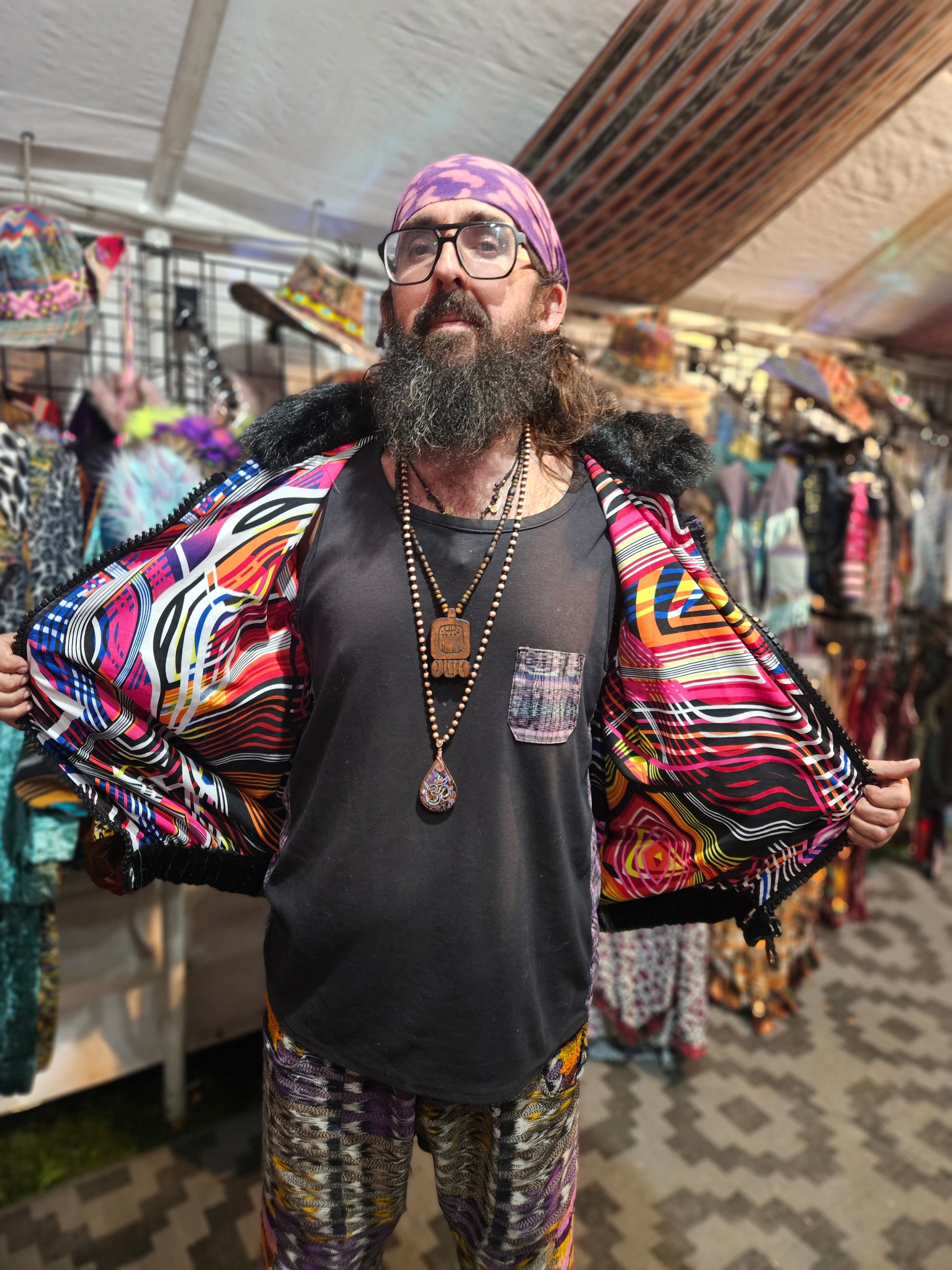 Funk Up Your Vibe & Liberate your Fashion with this incredible second collaboration between two of our featured designers Moksha Moda & Starlilly Creations. Ethically crafted in Guatemala, this stunning flower of life jacket is designed for the free-spirited and fashion-forward festival-goer.