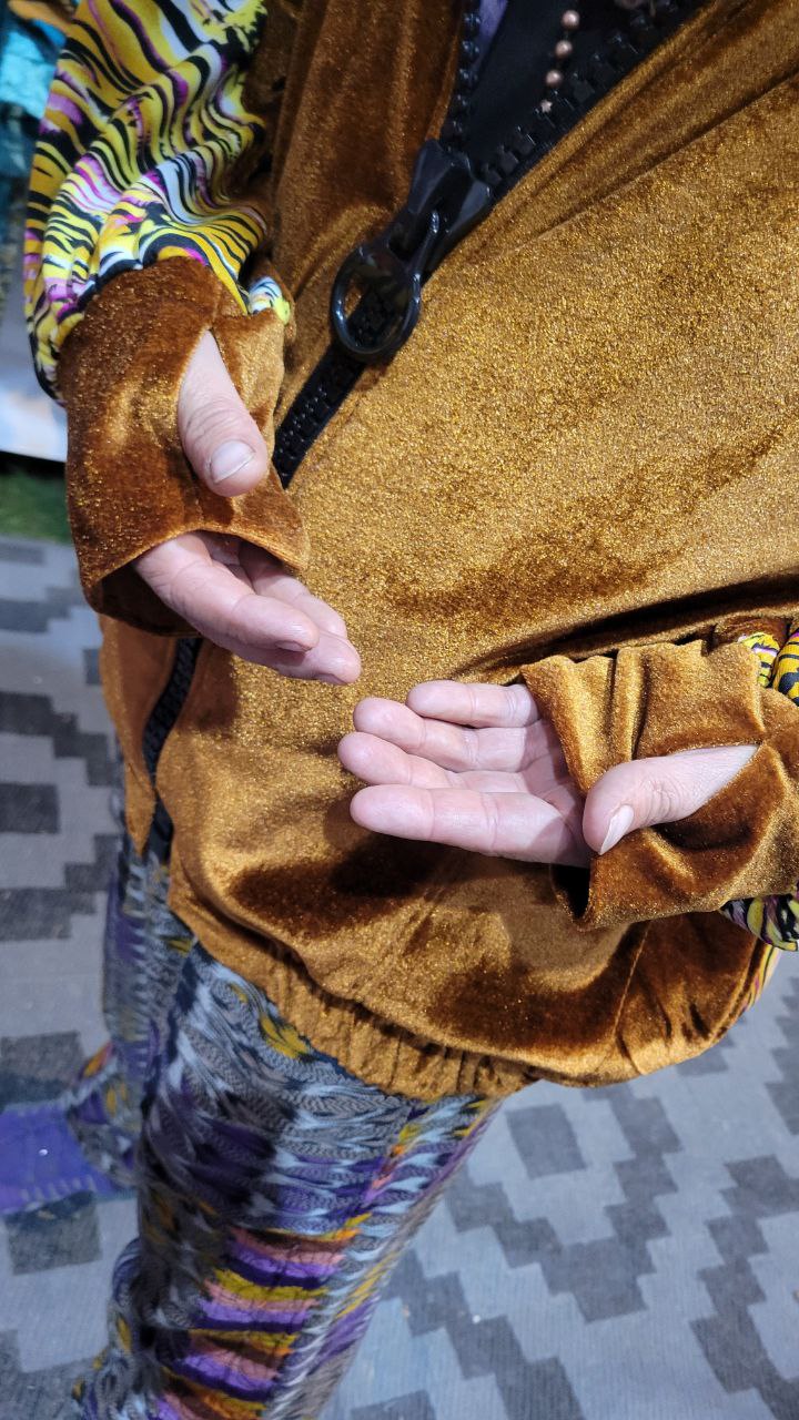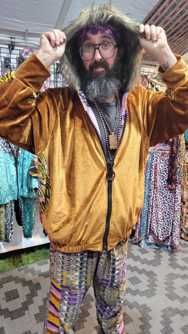 The intricate design of this flower of life jacket features upcycled hand embroidered Mayan huipiles from Chichicastetenango Guatemala. Huipiles are traditional blouses worm by Mayan women and the embroidery being significant to different villages in Guatemala. Even though huipiles across Guatemala are beautiful, huipiles from Chichicastetenango is in our opinion the most impressive and beautiful. The team behind Moksha Moda & Starlily Creations are grateful to be able to upcycle these incredible works of art and give them new life. This jacket is also lined and features detail with a super vibrant wild polyester print. The hood features a wild faux fur that will make you feel like a Queen or King late night at any festival. The jacket also features an elegant velvet for the sleeves/front body, thumb holes on the sleeves, three pockets, elastic waist, plus a ridiculous oversized zipper. However the focus of this jacket is the sacred geometry flower of life crocheted by the incredibly talented Starlily Creations which we feel shows one's gratitude for this beautiful gift called life.