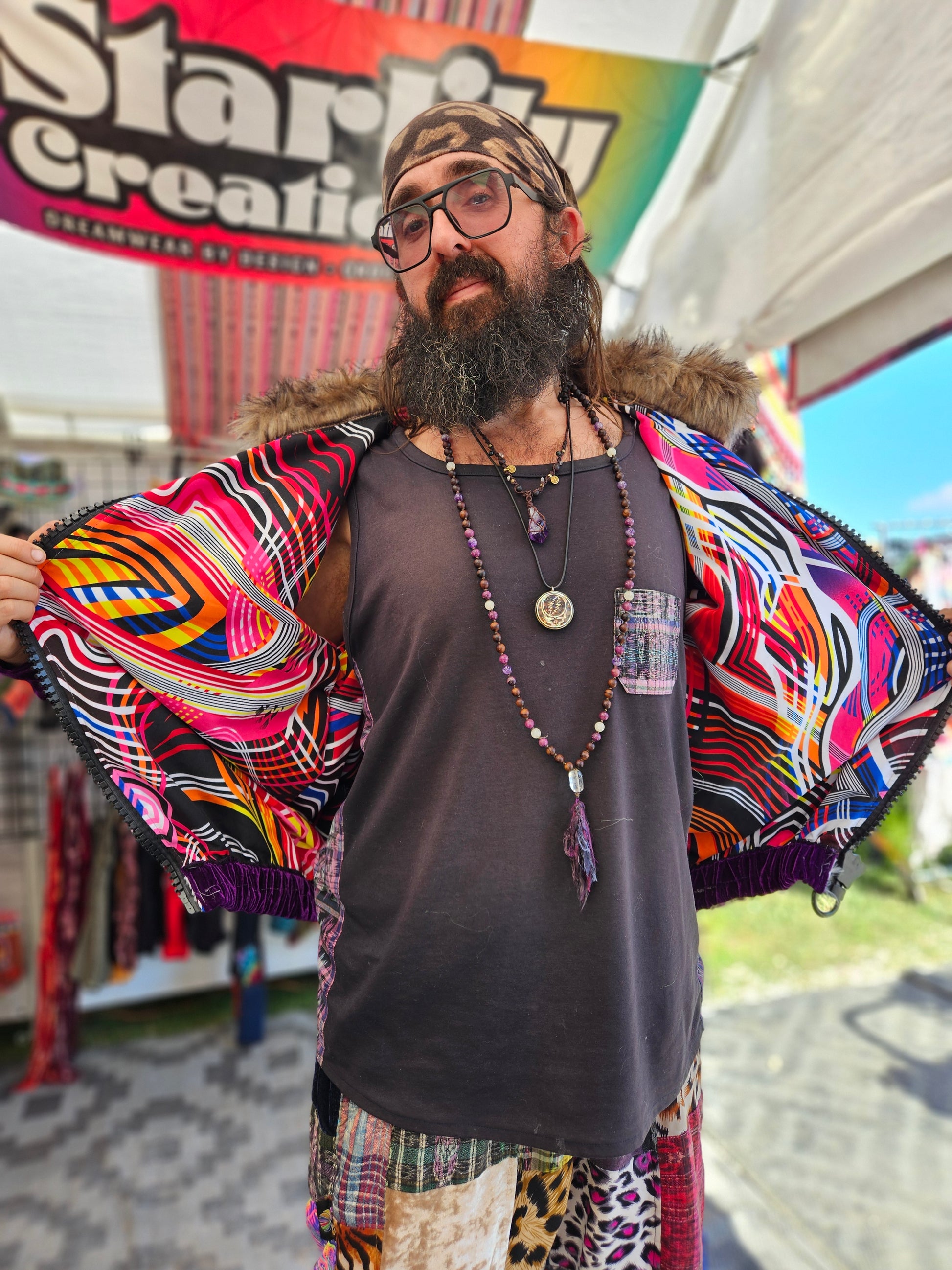 Funk Up Your Vibe & Liberate your Fashion with this incredible second collaboration between two of our featured designers Moksha Moda & Starlilly Creations. Ethically crafted in Guatemala, this stunning flower of life jacket is designed for the free-spirited and fashion-forward festival-goer.