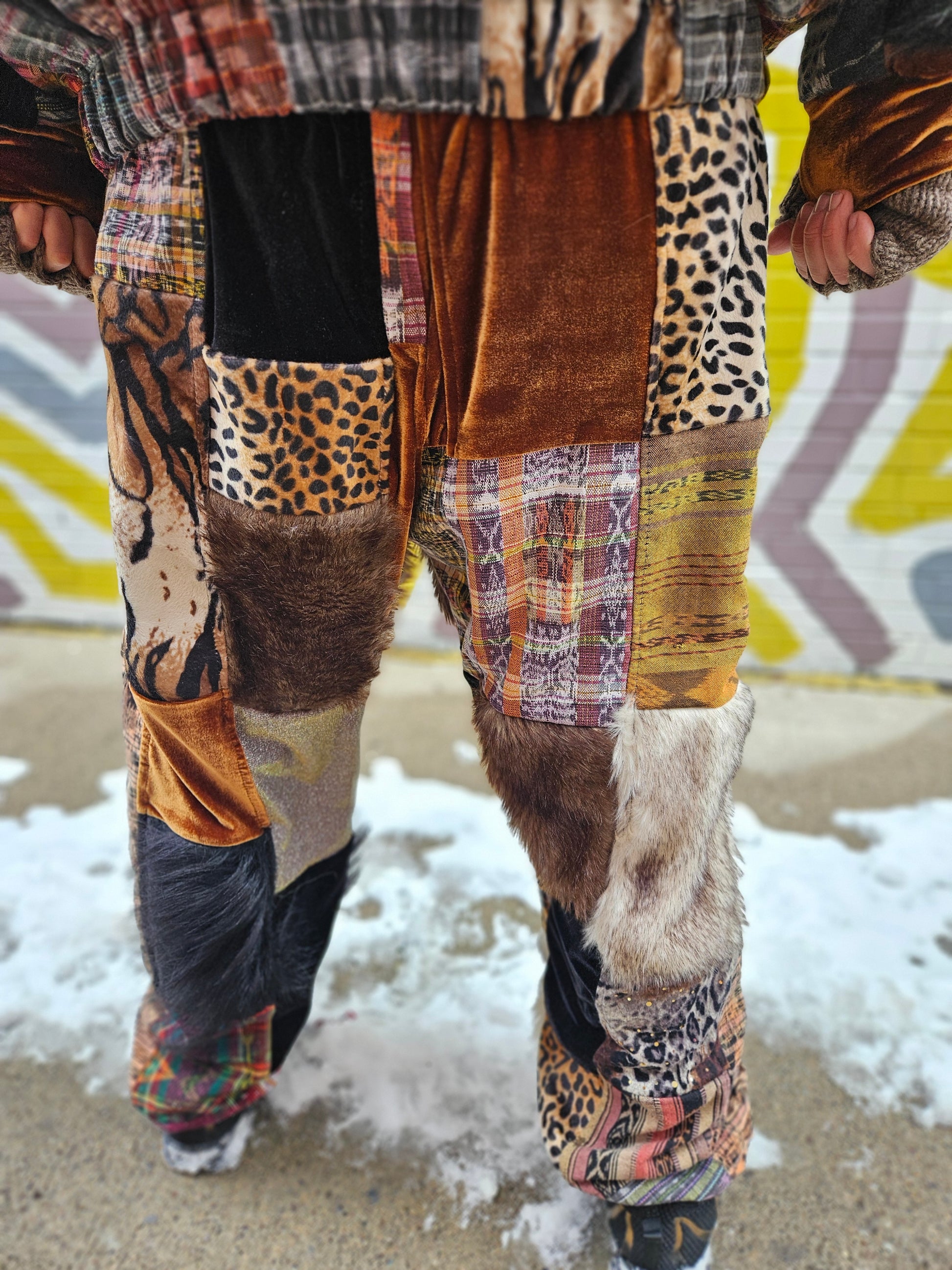 Save $50 at checkout when you buy these furry joggers with a matching patchwork cloak or jacket!