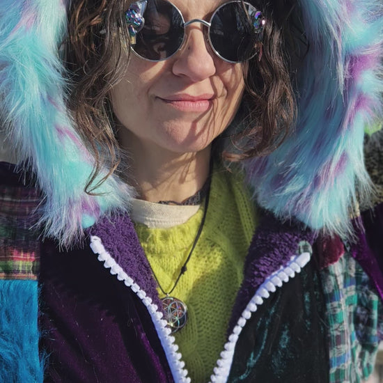 Looking for a unique, artsy, and funky addition to your festival wardrobe? Look no further than Moksha Moda's ethically crafted patchwork joggers! These one-of-a-kind wearable works of art are crafted with the scraps of the different collections that have been crafted over the past few years by the team of Moksha Moda. Textiles included in this patchwork joggers are beautiful upcycled fabrics from traditional hand-woven Mayan skirts sourced from second-hand markets in Guatemala, wild polyester prints, luxurious faux fur, and elegant velvet. Each fabric gem has its own story, making every patchwork joggers a wearable work of art with a new journey to embark on.